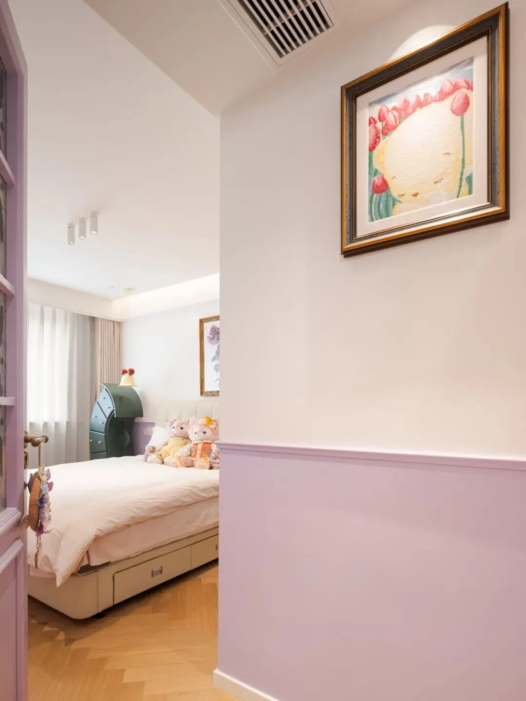 是通往童趣的秘密通道,复古壁画、撞色壁灯,红边勾勒的曲线,
