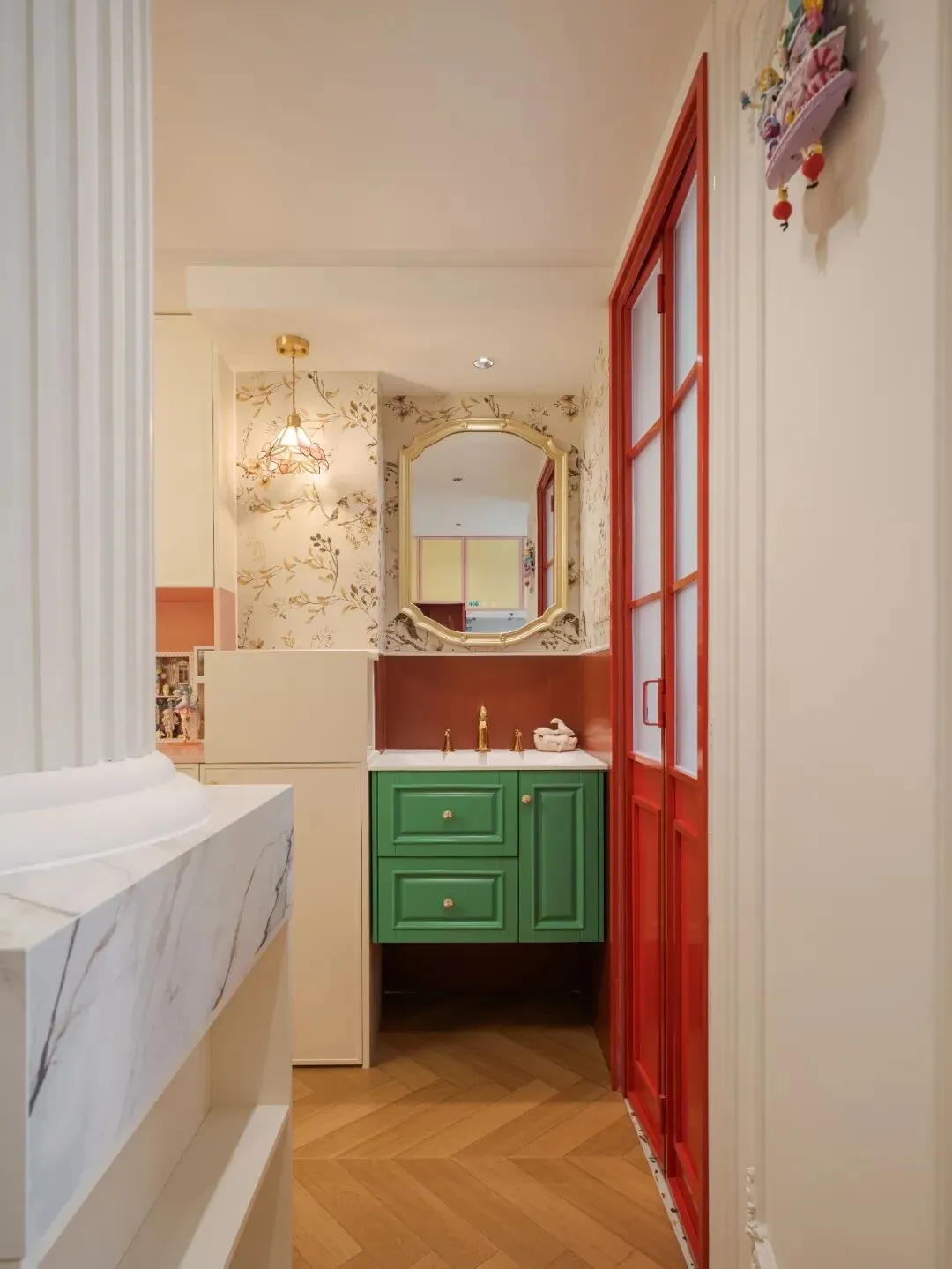 复古红门、罗马柱、彩色瓷砖,是设计师向旧时光借的诗意