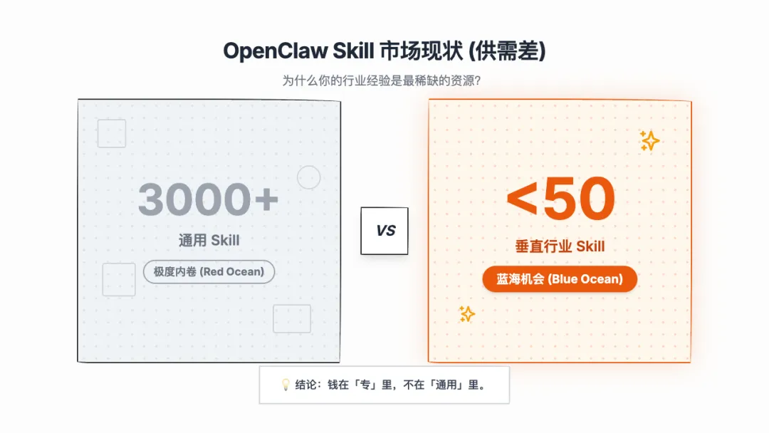 普通人能复刻的部分:不需要做一个商店。选一个你熟悉的行业,做一套"行业 Skill + 预配置模板 + 使用教程",定价 ¥99-299,通过自己的渠道卖。