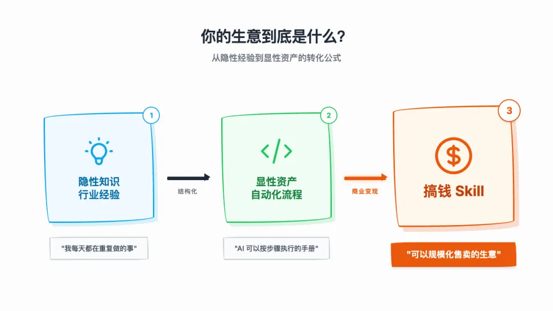 这个案例的特殊之处在于:他不是在卖 Skill,他是在用 Skill 提高自己的产能。不是每个人都要成为卖家,用工具放大自己的主业,往往比跨界进来更现实。