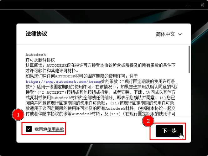 4、勾选【我同意】,再点击【下一步】