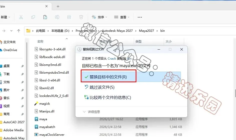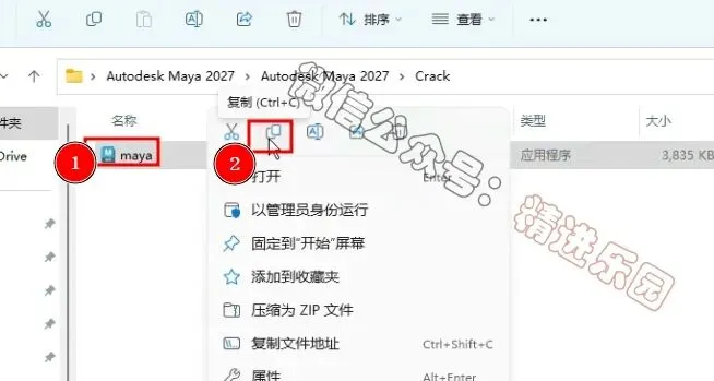 9、回到Maya 2027文件夹,找到【Crack】文件夹,右键【打开】它