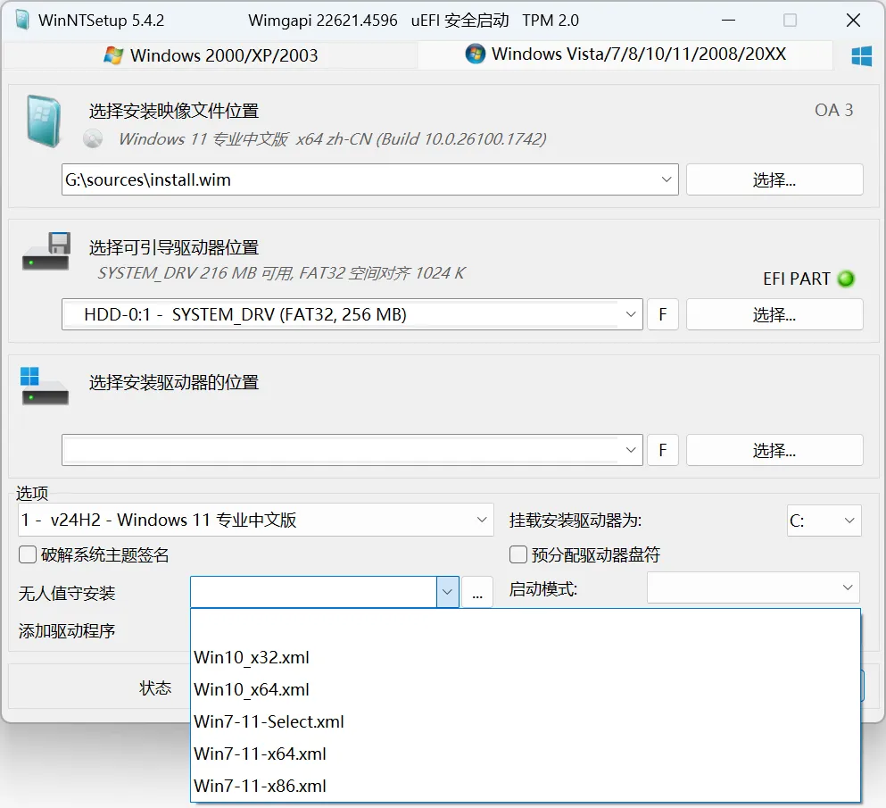 支持Windows2000、Windows XP、Windows7—Windows11下安装,同时支持多种安装源格式,ISO、WIM、ESD、SWM、VHD等镜像格式它都支持。