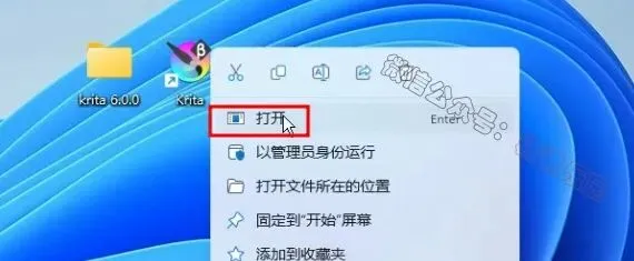 14、回到桌面,右键桌面上的【Krita软件图标】,点击【打开】
