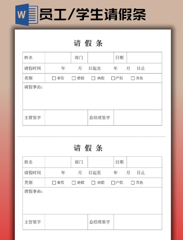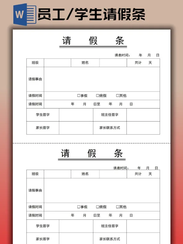 【2026】学生请假条/员工请假条模板(word电子版可打印)【免费分享】本文分享:学生请假条/员工请假条模板合集下载后办公软件可直接编辑修改打印网盘打包下载链接👇https://pan.quark.cn/s/75fef7b5043a#请假条电子版可编辑 #学生请假条样本以下是部分预览图下载以上仅为部分预览图点击阅读原文,可直接下载