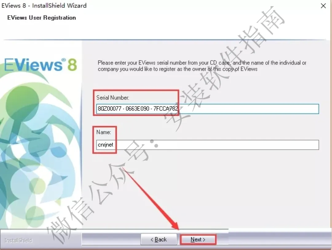11、Serial Number输入:80Z00077 - 0663E090 - 7FCCA782,Name输入:cnrjnet,最后点击【Next】