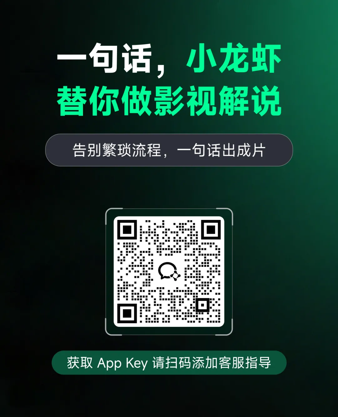A:文末扫码联系 AI解说大师商务咨询,即可获取你的专属 API Key。拿到后在终端执行 narrator-ai-cli config set app_key 你的API_Key 完成配置。