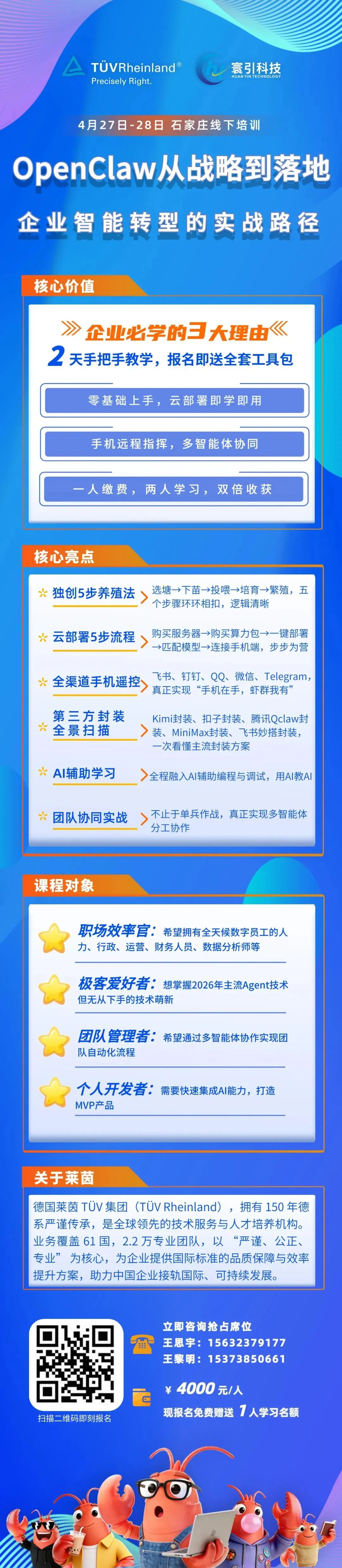 莱茵TÜV*OpenClaw | 零基础企业智能转型培训,石家庄站来袭