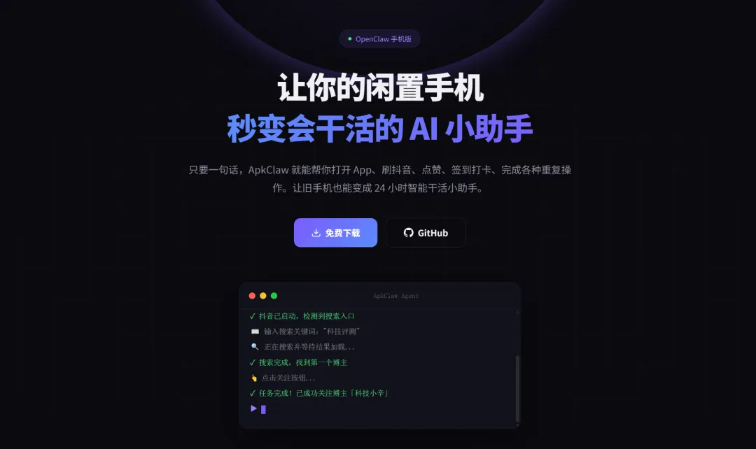 ApkClaw可以让一台原本可能闲置的手机,不再只是被动等待你去点击操作,而是变成一个真正能够“听懂指令、主动执行”的智能载体。换句话说,不是你去操控手机,而是你一句话,手机自己把事情做完。