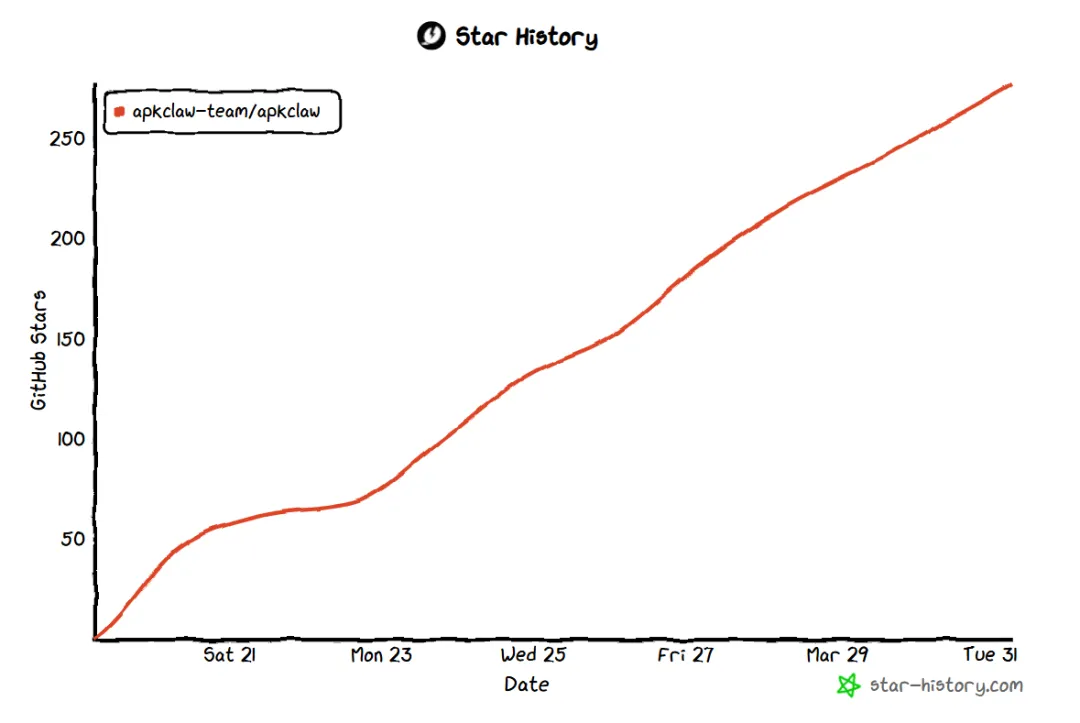 2026 年 3 月 19 日,ApkClaw v0.0.1 正式发布,项目基于 Apache 2.0 协议完全开源,代码也已经在 GitHub 全部公开。