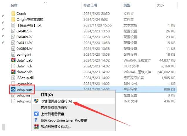 2. 选择【setup.exe】鼠标右键以管理员身份运行。