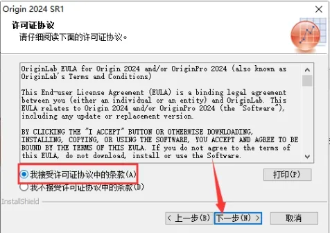 5. 软件许可协议接受,勾选【我接受许可证协议中的条款(A)】,然后点击【下一步】。