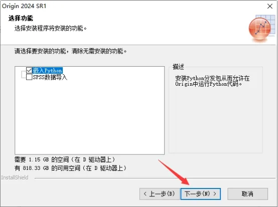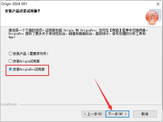 6. 选择【安装OriginPro版本】,然后点击【下一步】。