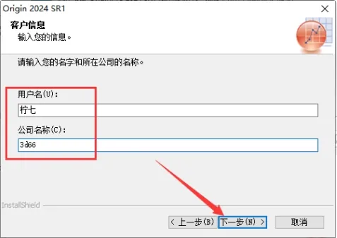 8. 客户信息输入,随意输入用户名和公司名称,然后点击【下一步】。