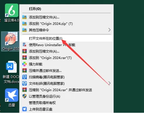 21. 选择桌面的【Origin 2024】软件,鼠标右键点击【打开文件所在位置】,进入安装目录。