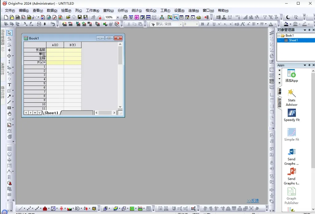25. 进入软件主界面,此时即可开始使用Origin软件。