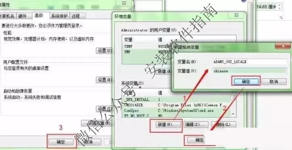 31.在系统变量中新建变量名ADAMS_GUI_LOCALE变量值Chinese然后点确定。