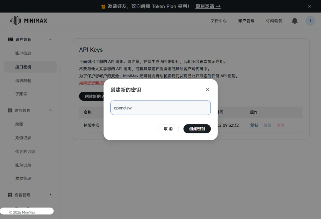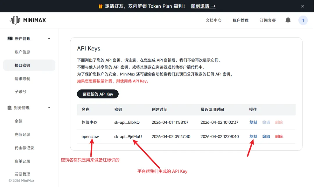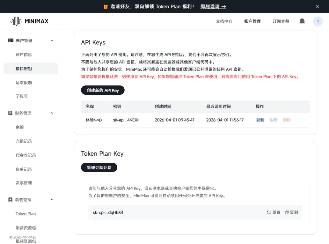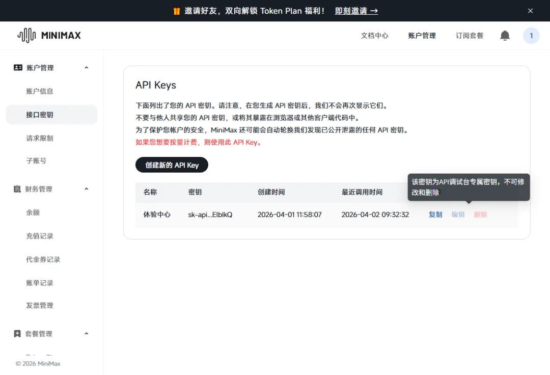 3. 去 MiniMax 生成 API Key