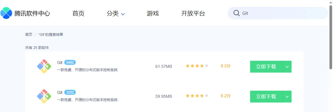 也有不少同学反馈 Git 安装包下载太慢,这是因为官方的下载源是 Github,国内访问 Github 不稳定,大家可以到腾讯软件中心下载。