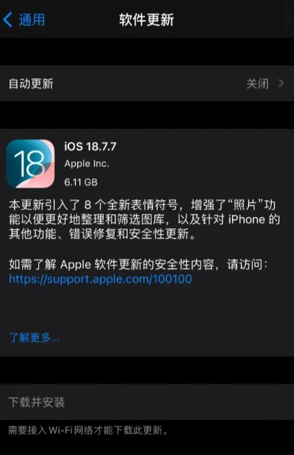 其实苹果之前也没完全停更iOS 18,只不过更新范围早就缩小了——目前iOS 18的最新正式版是18.7.7,但只针对三款不支持iOS 26的老机型:iPhone XS、iPhone XS Max和iPhone XR,支持iOS 26的机型,之前已经没法再收到iOS 18的更新了。