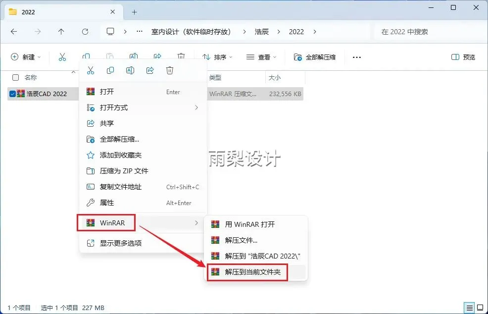 1.右键【下载的安装包】选择【解压当前文件夹】