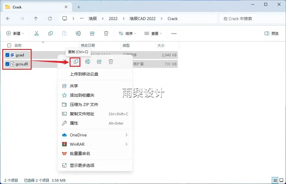 8.返回安装包;打开【Crack】文件夹,右键【两个全选】选择【复制】