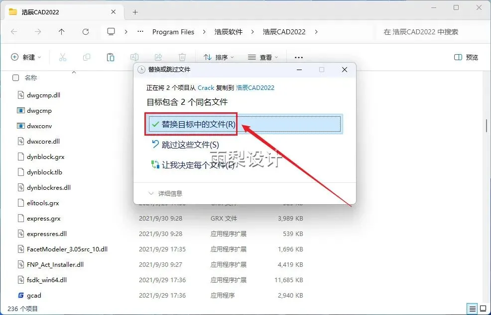 11.选择【替换目标中的文件】