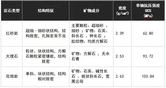 1.试验材料准备:研究选取了红砂岩、大理石、花岗岩三种典型岩石作为试验对象,在室内自然风化后开展测试:
