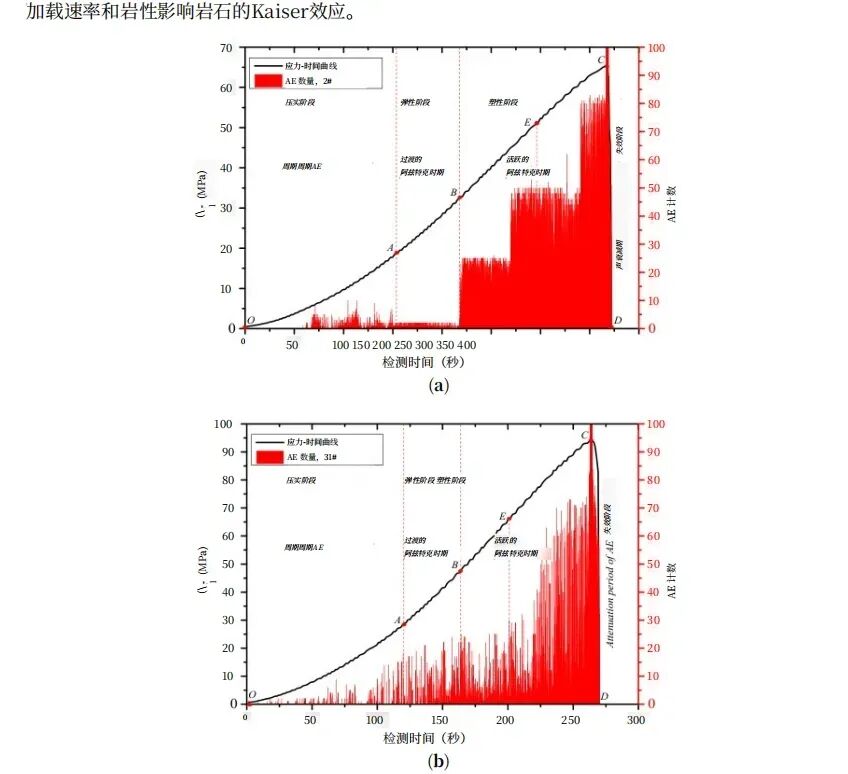 ②而新微裂缝的生成则会产生高频高能量的破裂型声发射,后者能够记忆历史最大应力对岩石的影响。