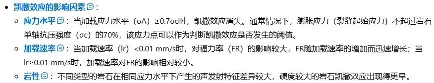 Kaiser效应:是指岩石对加载历史中最大应力的记忆,表现为加载应力幅度超过历史最大应力时才会发生明显的声发射现象。