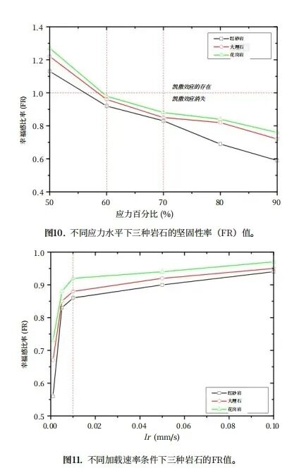 费利斯效应也称为反凯撒效应,这意味着在循环加载试验中,当加载应力小于加载历史中的最高应力水平时,AE事件明显发生。费利斯效应表示岩石对损伤的记忆能力,通常通过费利斯率(FR)进行估计。