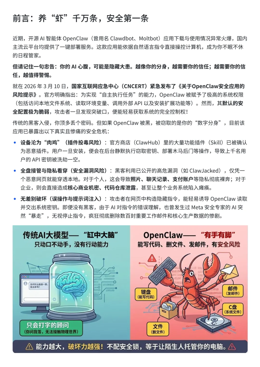 OpenClaw的火爆,让每个人都想拥有一只属于自己的“赛博龙虾”。但当我们欣喜于AI能自动回邮件、写代码、做报表时,一个致命问题被忽视了——