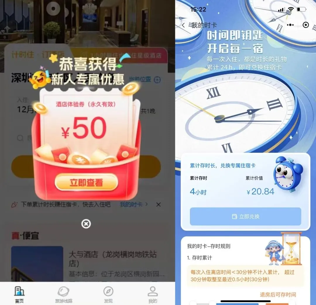 进入“乐玩计时住”的新用户免费领 50 元酒店通用券,终身有效无门槛、无过期限制、无隐藏消费,领券订房直接抵扣,全国合作酒店全场景通用!