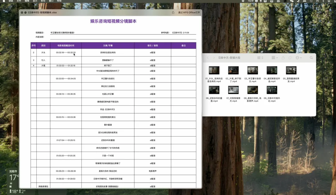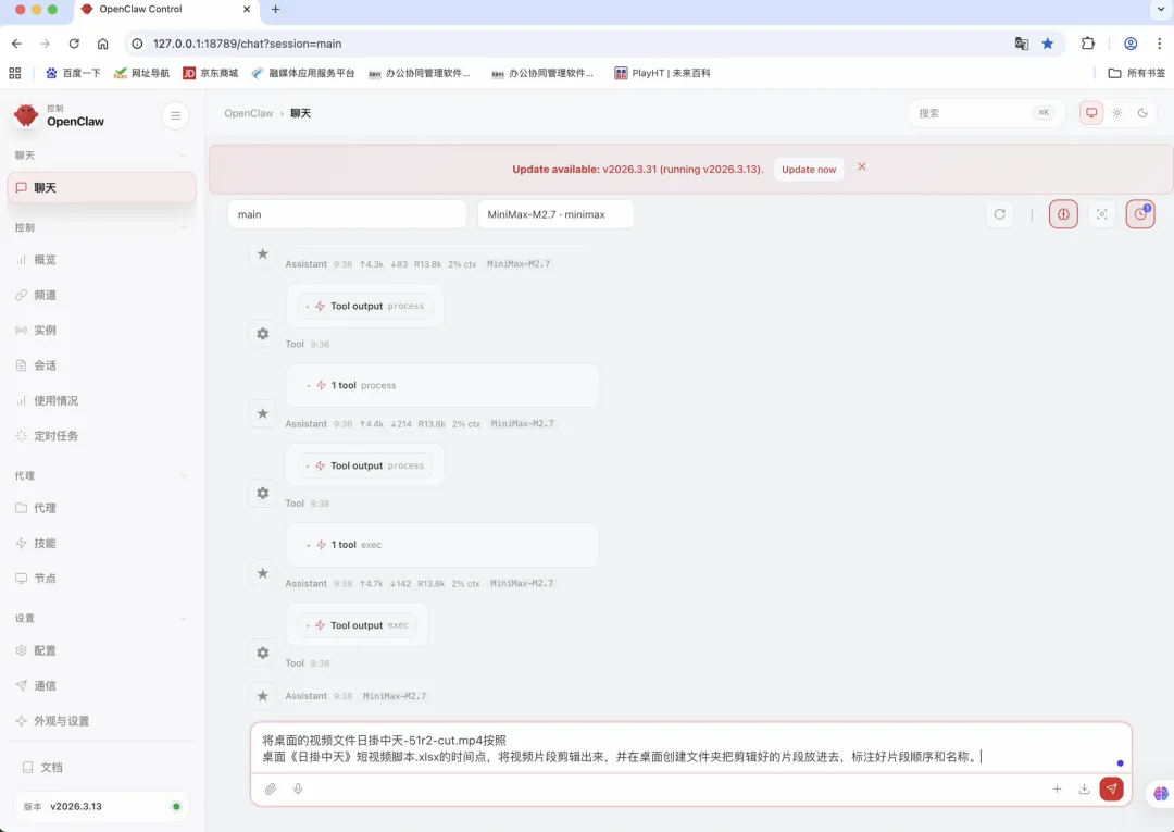 将视频文件(如电影《日卦中天》)和剪辑脚本(含时间点)放在桌面,方便 OpenClaw 直接调用。