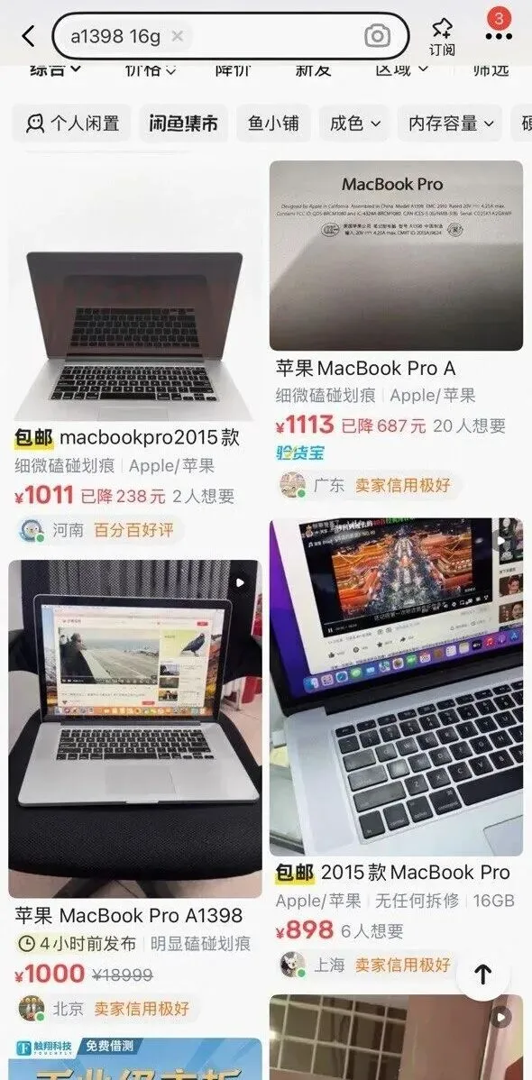 搜索 MacBook Pro 2015,发现完整版的价格在 800-1000 多。