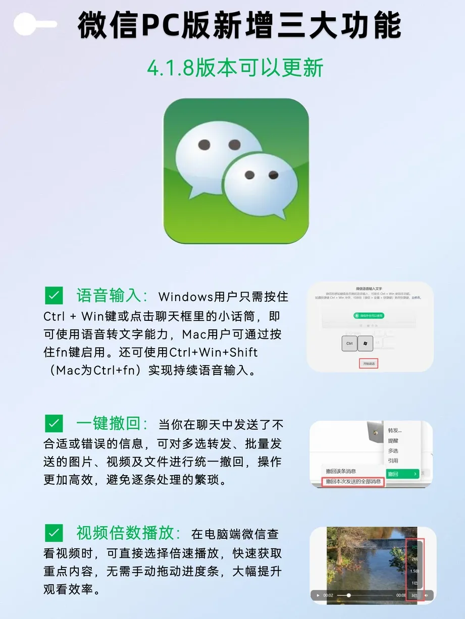 电脑版微信更新了,语音输入、一键撤回、倍速播放等功能也更方便