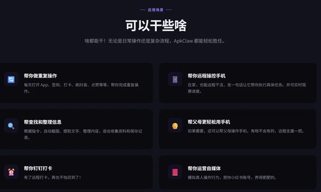 简单说,ApkClaw 是一款手机自动化工具。