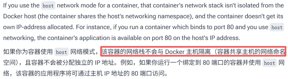 Docker官方定义:容器不创建独立的网络命名空间,直接加入宿主机init进程的网络命名空间,与宿主机共享完整网络栈。