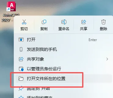 9、在电脑桌面找到AutoCAD 2027,鼠标右键打开文件所在的位置进入