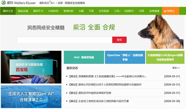 威科AI+·法律丨网络安全合规模块-专题栏目