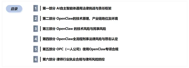 为帮助“养虾人”、开发者、企业用户等市场主体清晰识别风险、守住法律底线,威科先行重磅推出《“养虾人”合规手册:OpenClaw 全场景法律合规专栏》。本专栏汇聚法律专家的实践经验与研究成果,从法律框架、产业链地位、技术原理及风险、民事责任、刑事责任、知识产权边界、数据合规要求、监管政策导向梳理体系化合规架构,覆盖个人使用、OPC运营、企业部署、律师执业等场景,为各类主体提供权威、清晰、可落地的 OpenClaw 风险要点与法律合规指引。