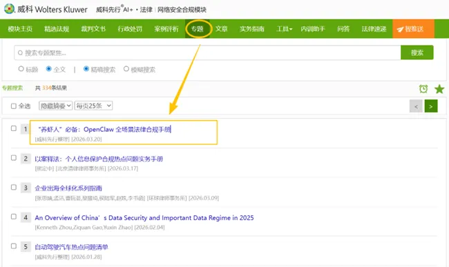 威科AI+·法律丨网络安全合规模块-专题栏目