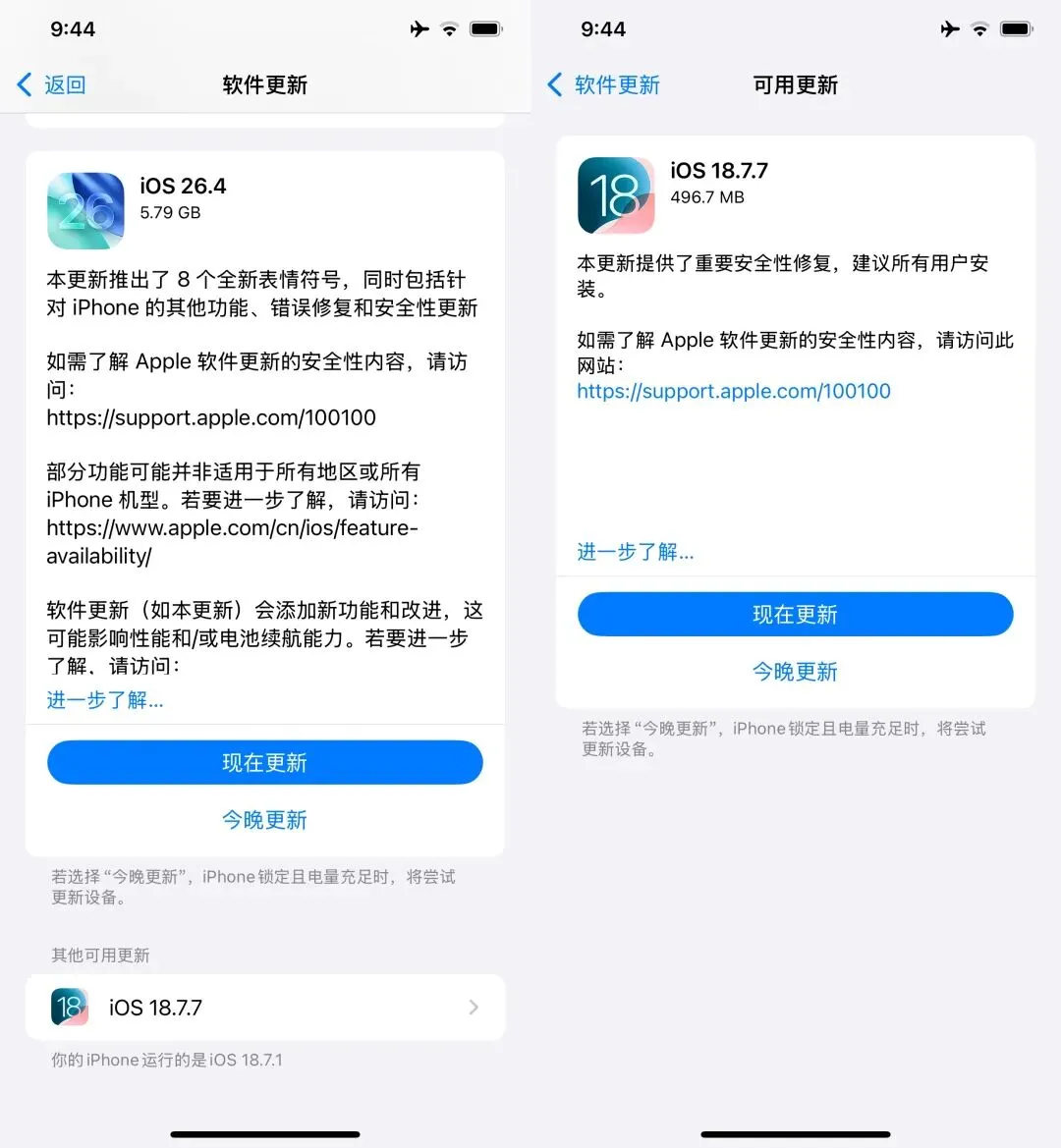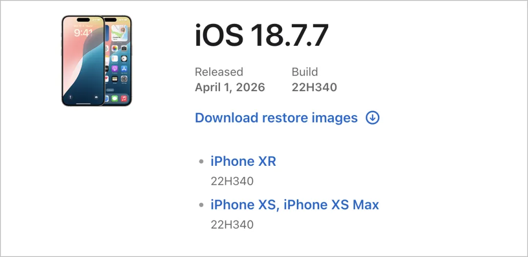 这次的 iOS 18.7.7 不再仅限于三款无法升级 iOS 26 的旧机型(iPhone XS、iPhone XS Max、iPhone XR)。对于那些本身支持 iOS 26,但仍然停留在 iOS 18 的用户,同样可以检测到这个版本。