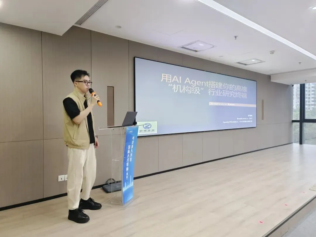 紧接着,李海跃校友(broadcareer.ai CMO,金融创业者)以“用AI Agent搭建你的高维‘机构级’行业研究终端”为题,展示了AI在金融与职业发展领域的深度应用。