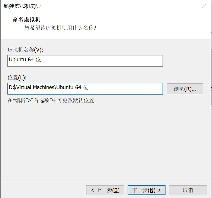 步骤3:设置虚拟机名称和存储位置