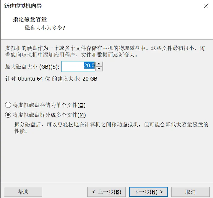 磁盘大小建议设置为「40GB及以上」(OpenClaw本身占用不大,但后续安装模型、技能、工具,需要预留足够空间),勾选「存储为单个文件」(性能更好,方便后续迁移虚拟机),点击「下一步」。