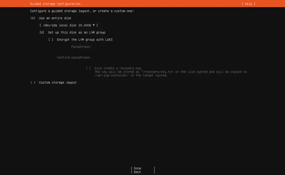 选择「Erase disk and install Ubuntu」(清除磁盘并安装Ubuntu),勾选「Use LVM with the new Ubuntu installation」(使用LVM管理磁盘,方便后续扩容),点击「现在安装」。