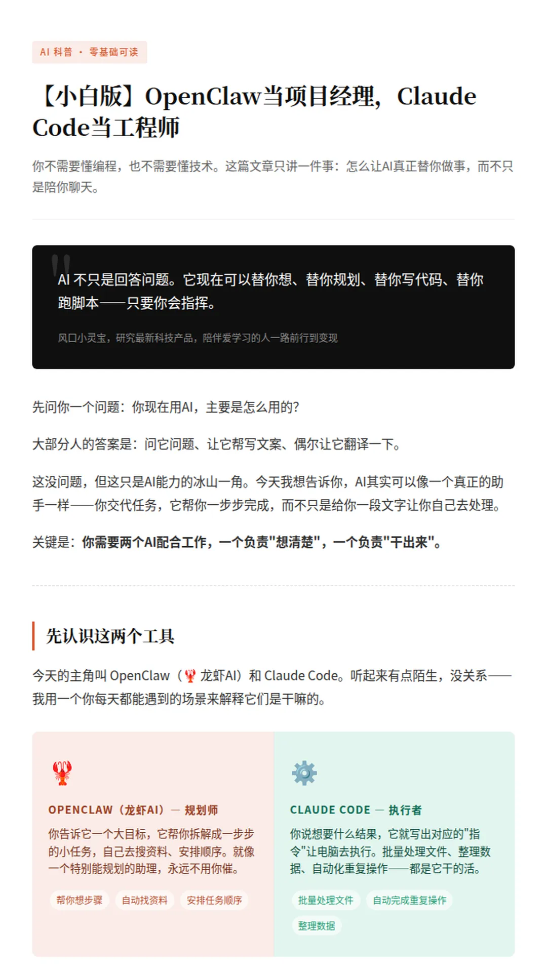 【小白版】OpenClaw当项目经理,Claude Code当工程师
