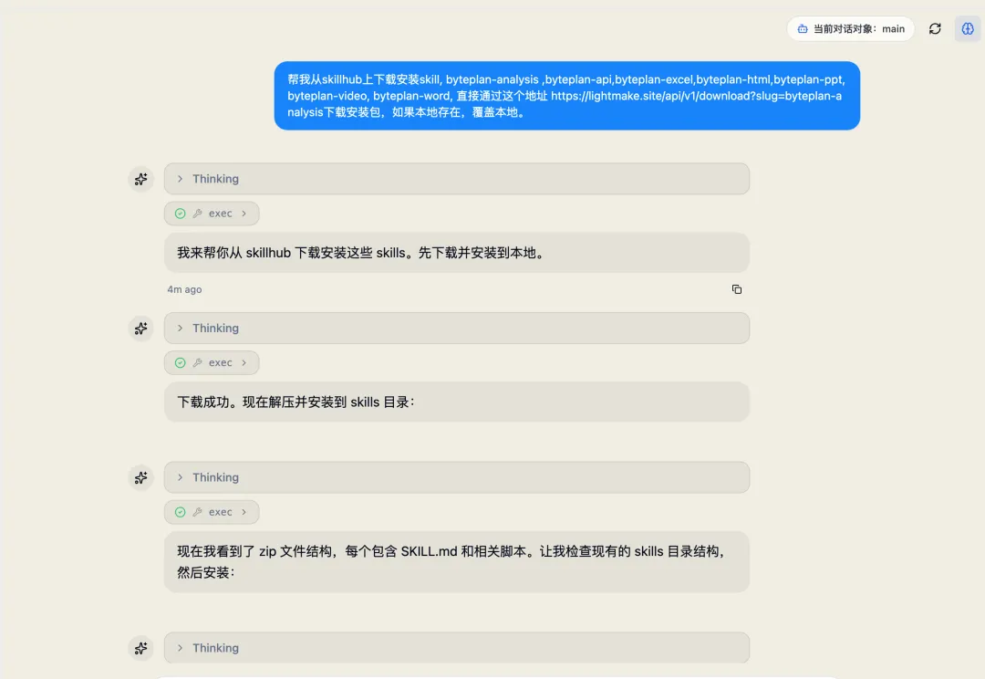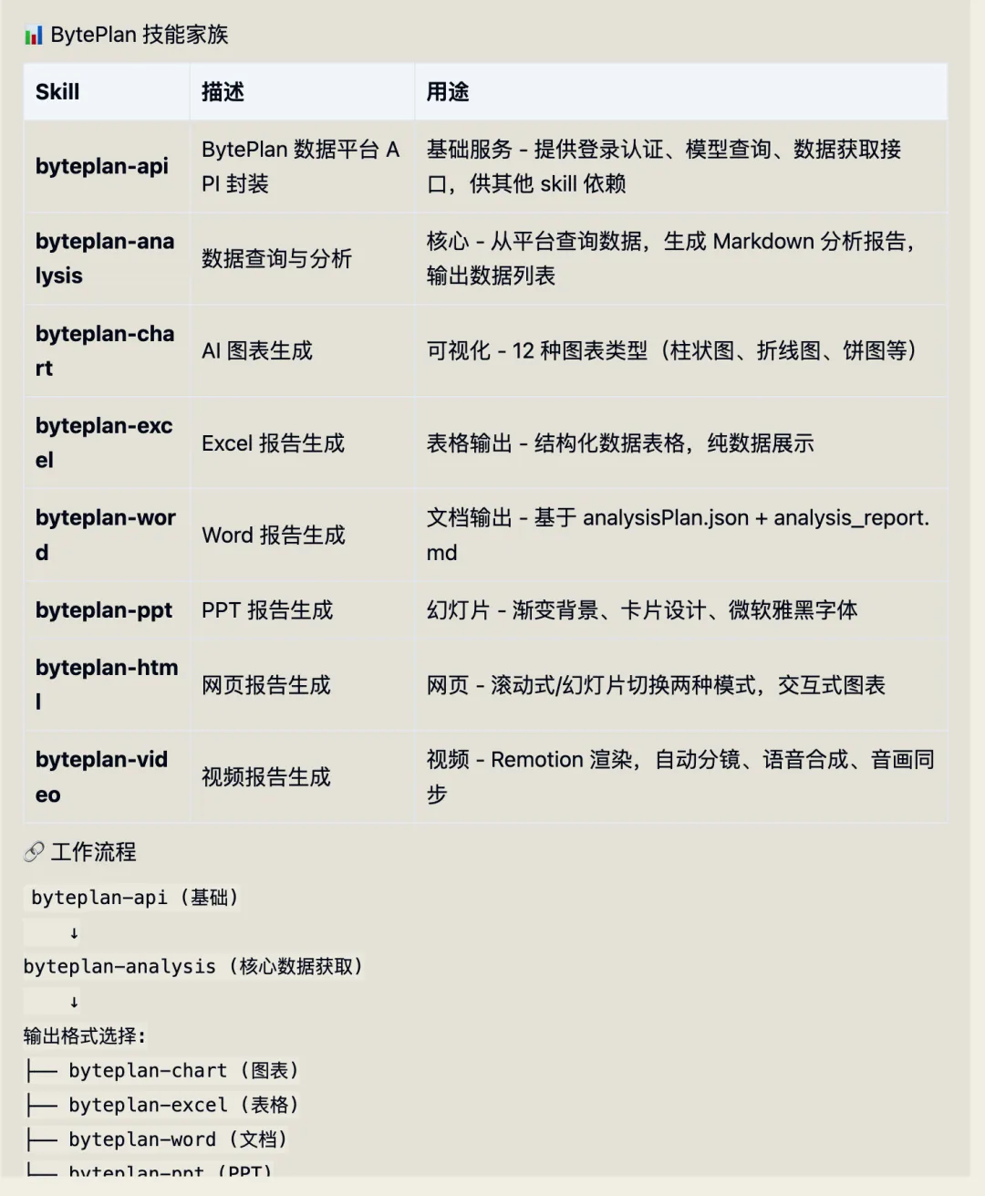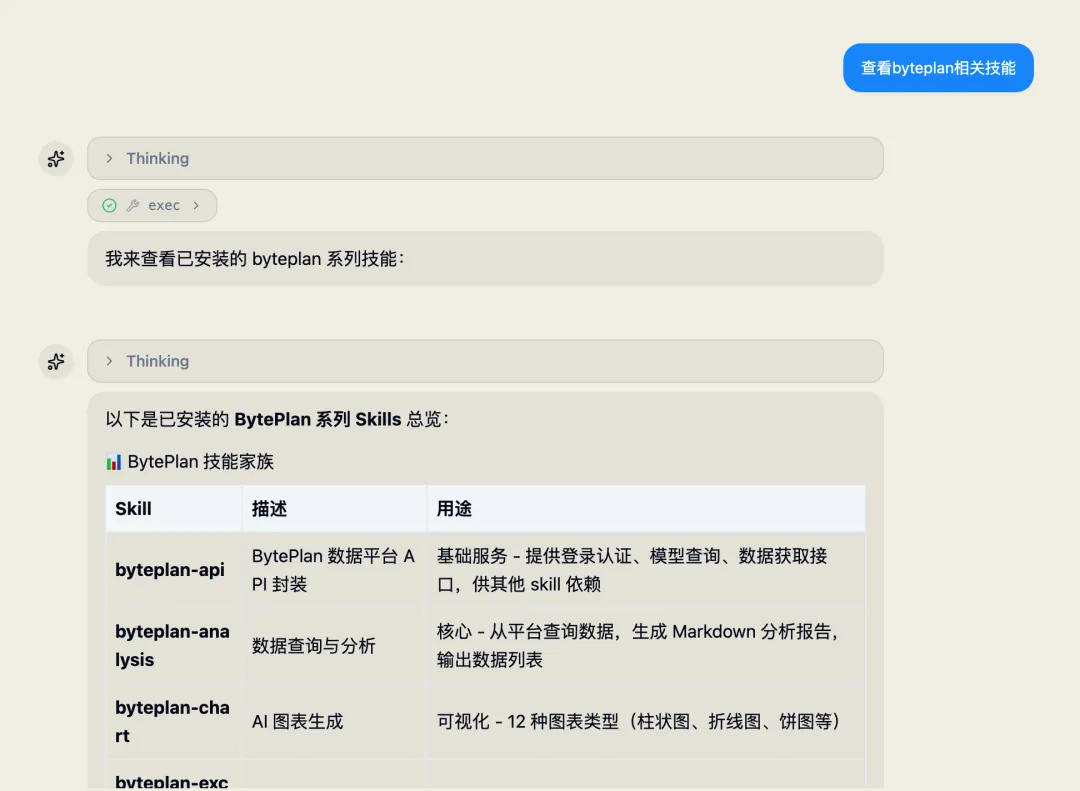 安装成功后,查看一下byteplan提供了哪些技能