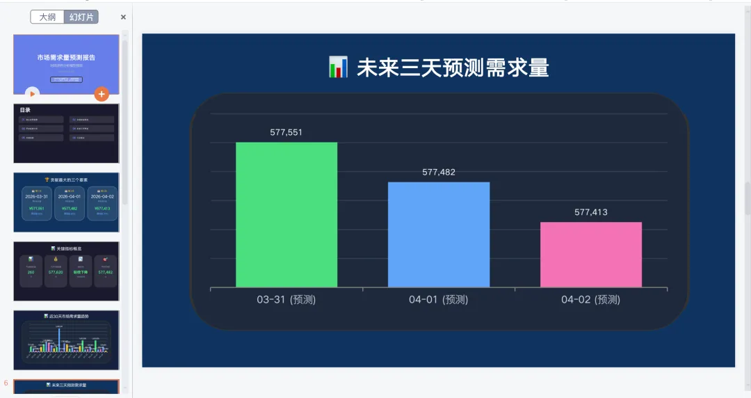 输入 基于当前报告数据生成ppt,生成的ppt样式和内容和网页差不多。